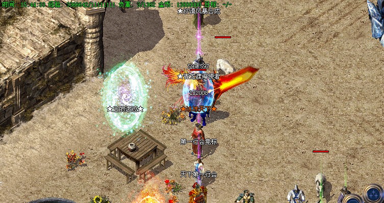 开区第二天全体行会集体拿沙,第一任沙城行会奖励50W元宝,以后每次拿沙奖励20W元宝!