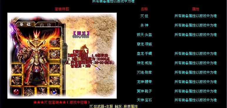 【装备爆率】 本服所有装备,冥刃,灭·苍穹,灭世·神斩,龙凰·斩,幽·冥,赤の焰均可爆出,打不到终极你骂街..