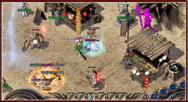 19.非RMB玩家,去[装备狂暴][永恒之塔][传奇庄园]打怪爆装备,可回收大量元宝!可以爆到王者、金牛、炎龙、荣耀、必杀、主宰、传奇装备!新手装备去[装备狂暴][魔龙城]打,练级带3倍经验勋章去[疯狂练级圣地]