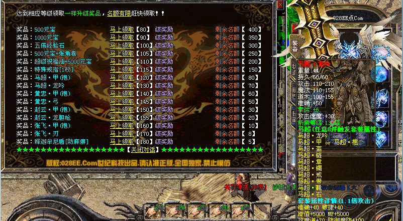 【介绍】初级装备:疯狂打宝,高级打宝,难度递增,怪物爆率高,爆出传奇、特戒等