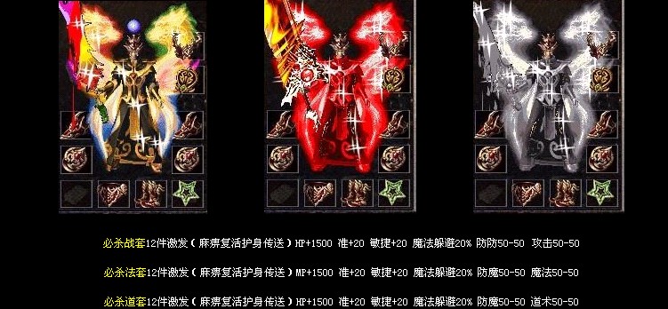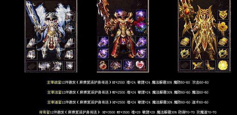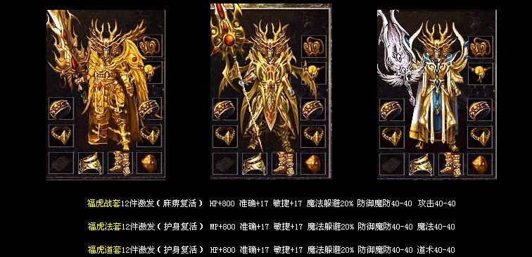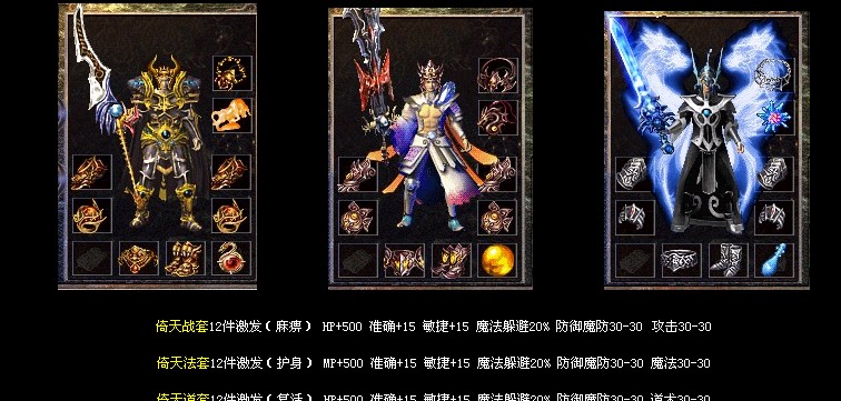 装备等级为→炎龙套装→荣耀套装→倚天套装→福虎套装→必杀套装→主宰套装→传奇套装→祥兔套装