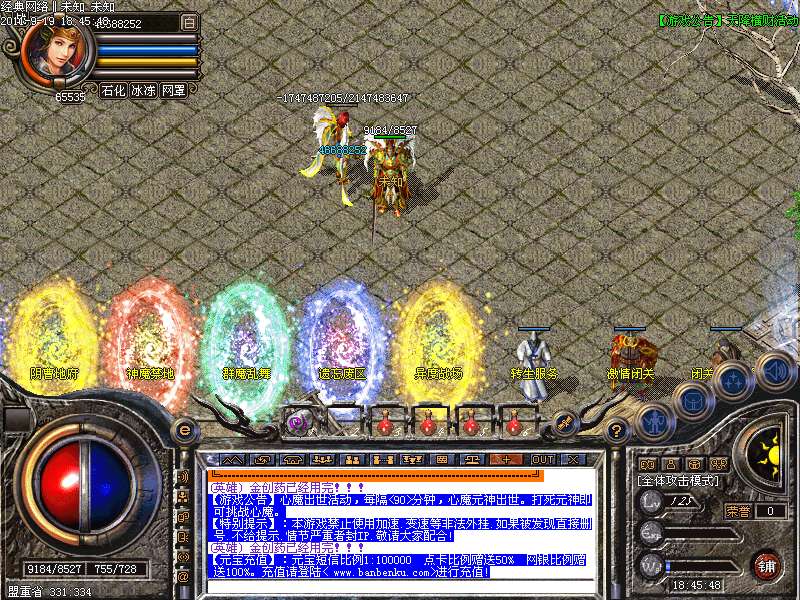 【特色活动】: 挑战心魔,天下第一,胜者为王,玉兔送福,天降横财,上古龙神.激情PK.土药站经验。