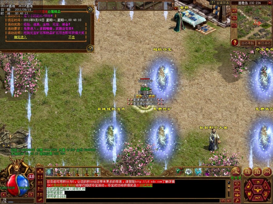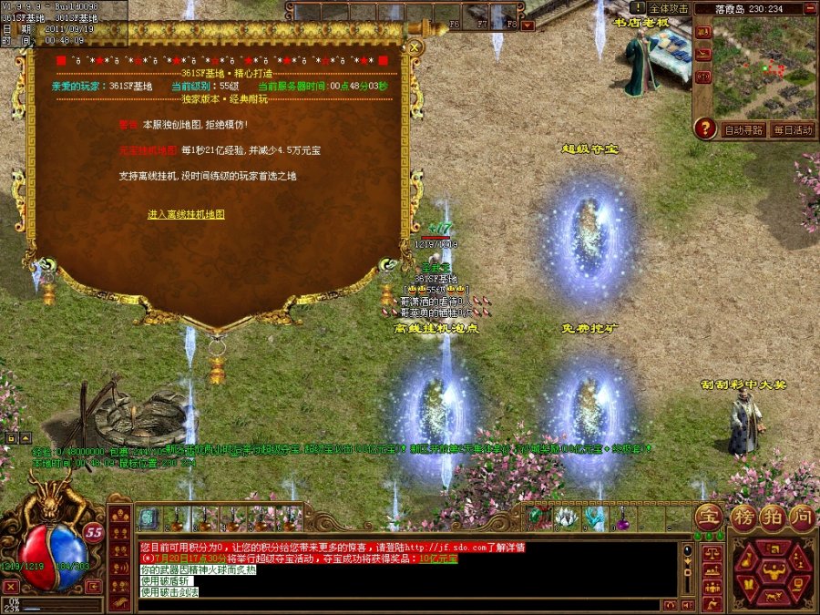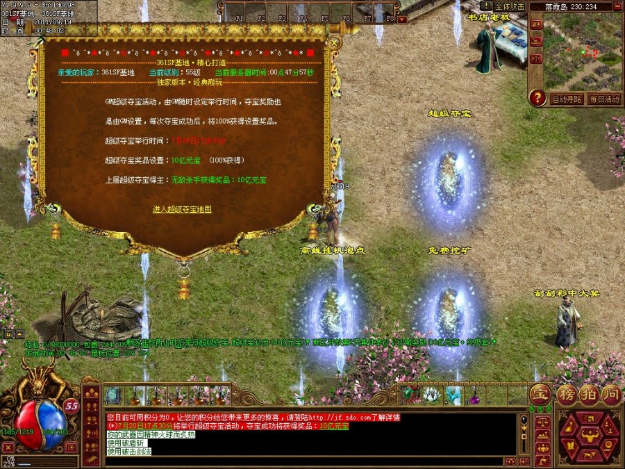 新区开放两小时后举行超级夺宝,超级宝必出(10亿元宝)!新区开放第2天集体拿沙,沙城奖励(10亿元宝+终极套)!