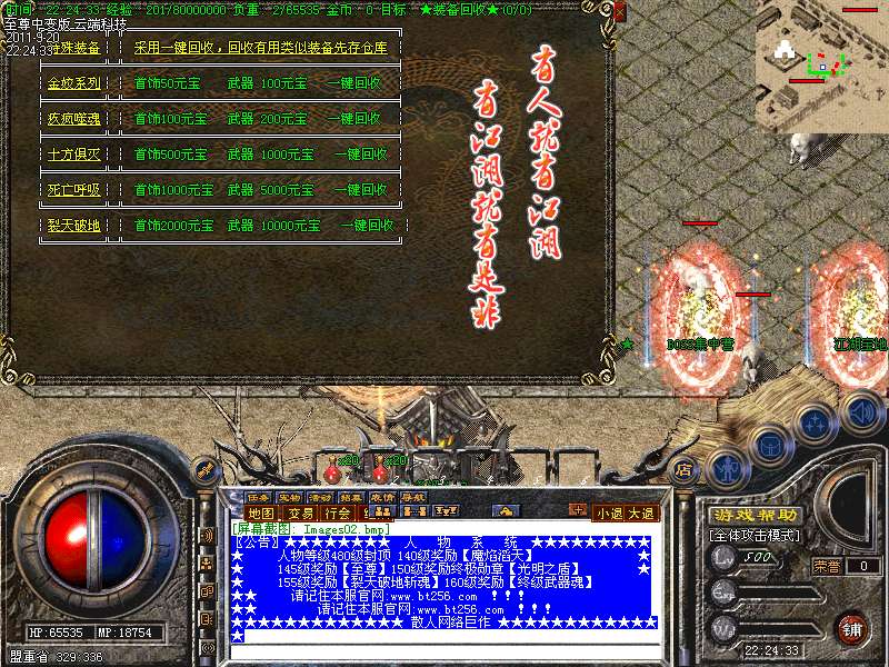 ★★★全新版本已更新到完美装备。转生已开放20转。等级开放480级PK更激情。★★★