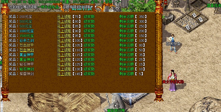 6.增加特色冲级奖励.到指定等级可领取装备.积分可以免费领取东西.