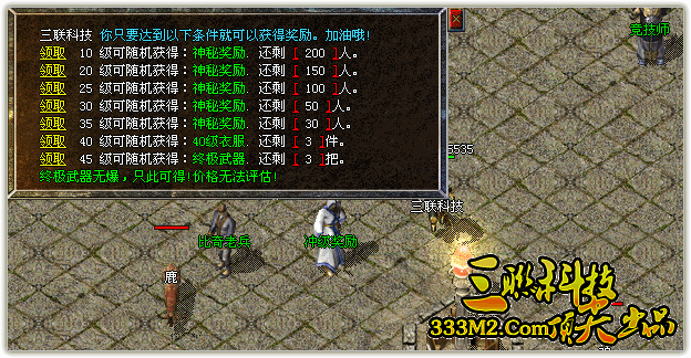 【每天活动】盟重,比奇“竞技师”加入每天三个活动,完全免费,踊跃参加的玩家还可以得到大量金币,经验。喜从天降系统只是为了给大家增加新的乐趣而已。