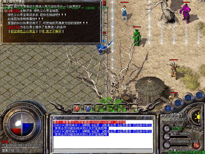 特殊功能:超级打宝地图,1.1倍攻击力,2倍经验。(会员命令:@会员)