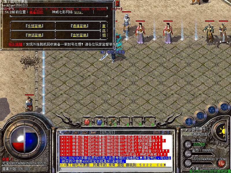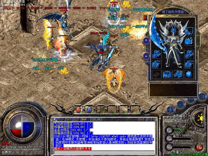 神话系列:在新地图地图爆,,GM地图,七彩花园,会员地图每2小时会刷2个携带毁灭套的人型怪物,运气好永恒装备就到手(在土成NPC可以合成)。 [暴率好爆] GM地图狂 GM终级BOSS好爆