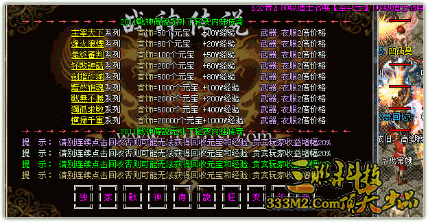 【特色功能】:低级装备狂爆.高价回收 让您不花一分钱!!