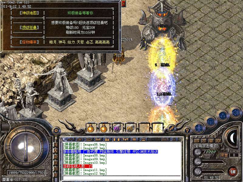 [255,249]攻城奖励:晚上22:01-22.30可以自行在沙皇宫领取奖励.攻城奖励为128W元宝!