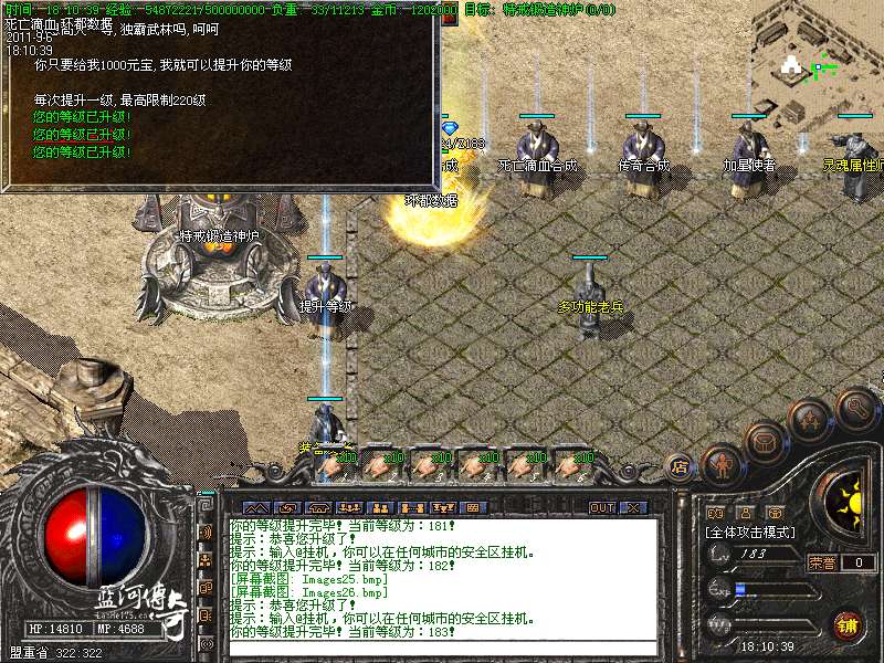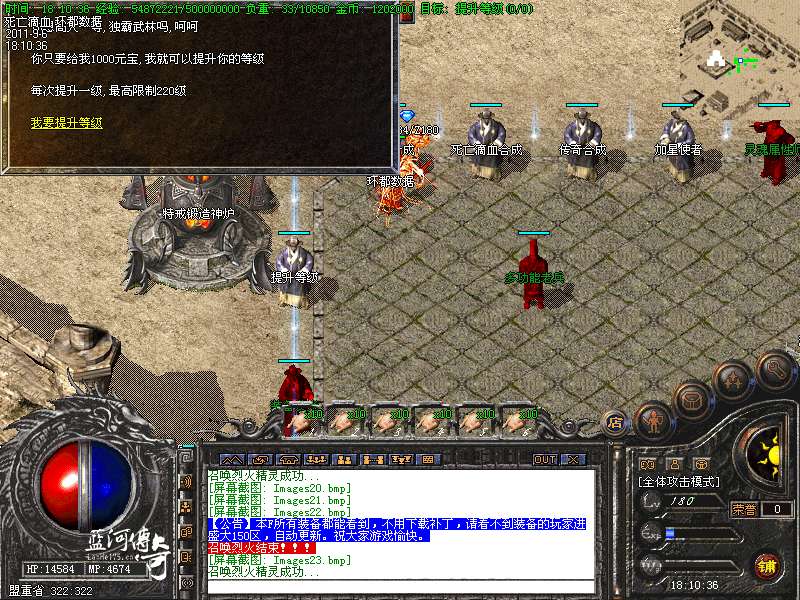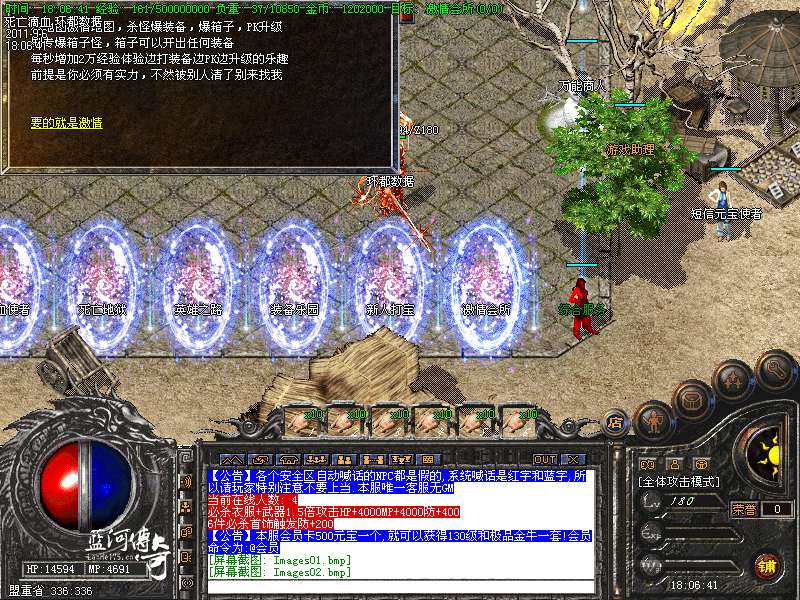 【激情PK 】本服特别添加激情PK堂,死亡人物掉一级。是PK比武的好去处。