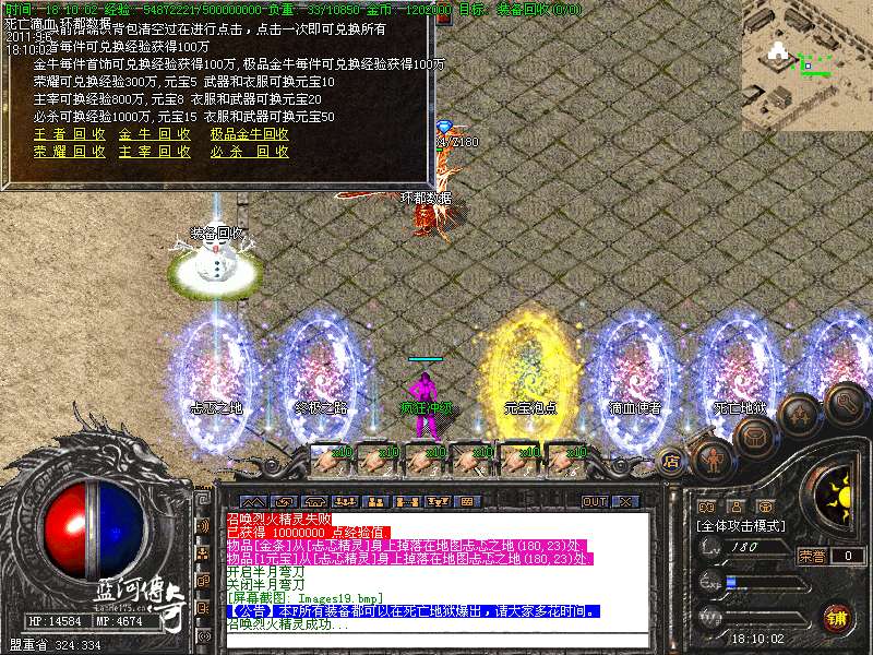 【装备回收】玩家打出来的各种,极品金牛,倚天荣耀,主宰,都可回收.可以在土兑换NPC那里换取超高经验和元宝.