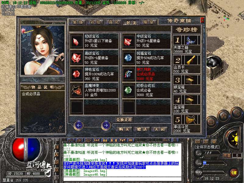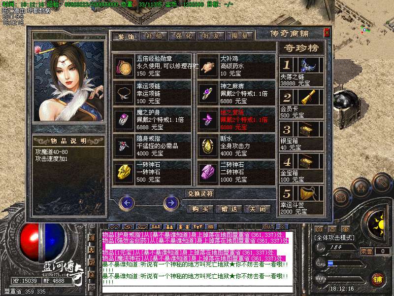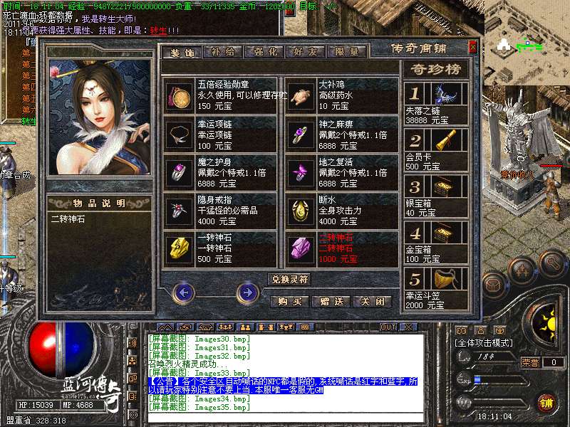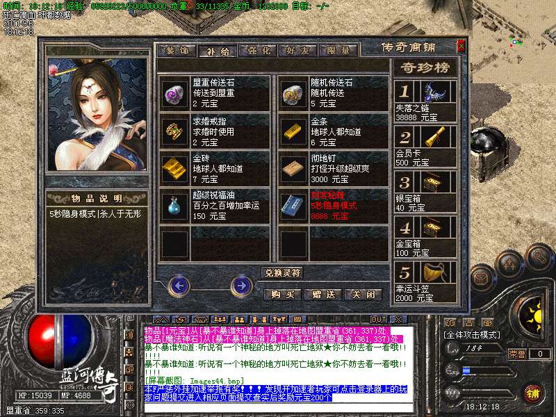 【新增宝箱】服务器新增加金宝箱,银宝箱。可以开出主宰,滴血,终极装备。箱子可以打怪爆出,商铺购买,
