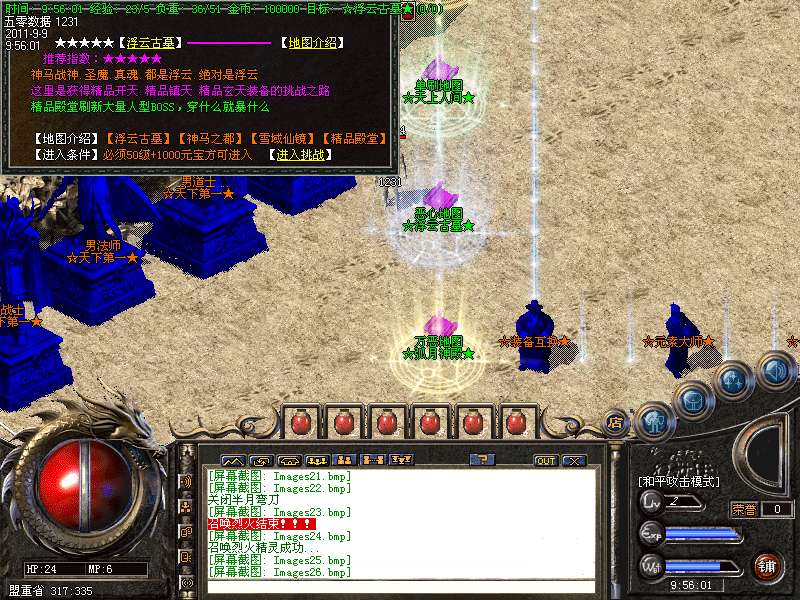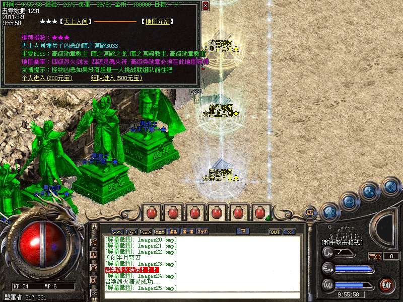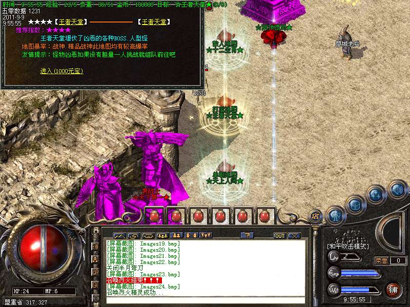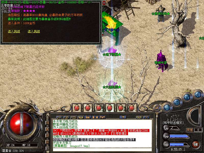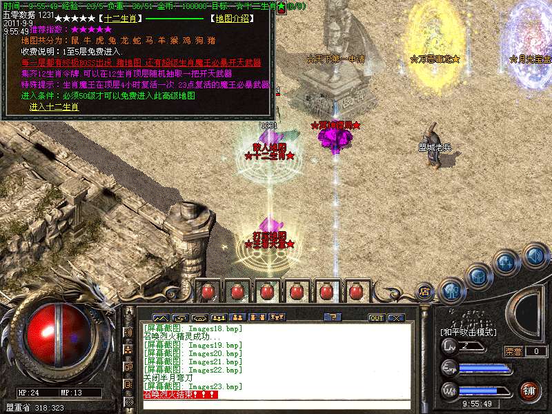 ★★装备地图:地图不多不少,刚刚好,喜欢单独打怪,不喜欢和别人抢的玩家可以选择进入十二生肖地图,5层之后每小时都有大量BOSS出现,足够你慢慢享受打宝的乐趣。12层更是BOSS集中营!