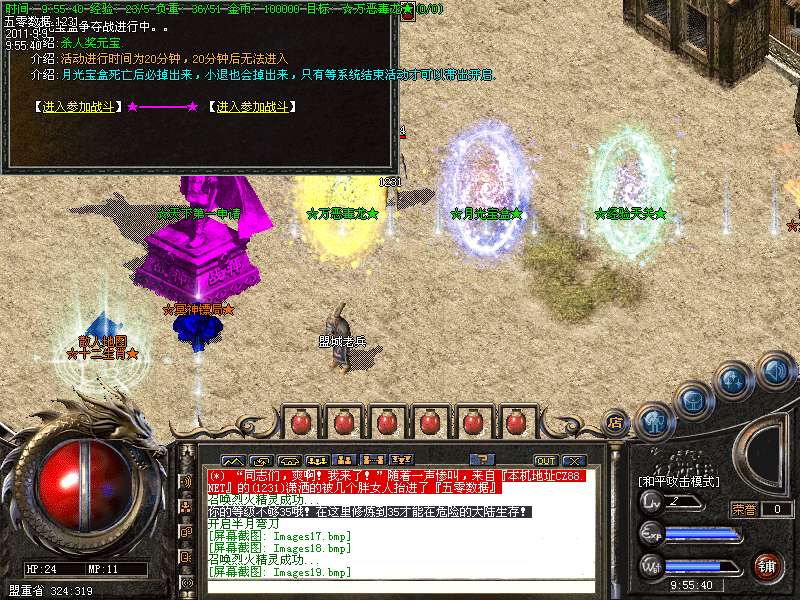 ★★月光宝箱大战:每天开放两次次,抢得月光宝盒,就有机会获得一件战神类终极装备和8888元宝,每天开放时间14:30 22:30 英雄不可错过!★★