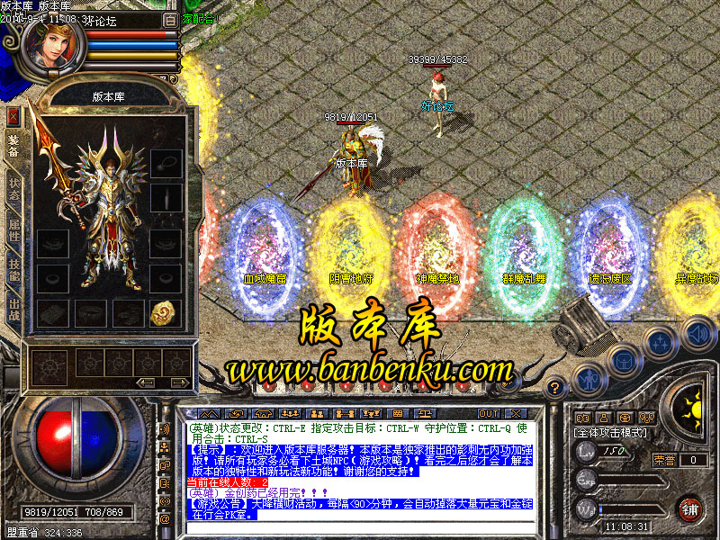 - ☉ V8引擎传奇端游【荒域专属单职业九大陆】Win一键端+配套补丁网站+架设教程