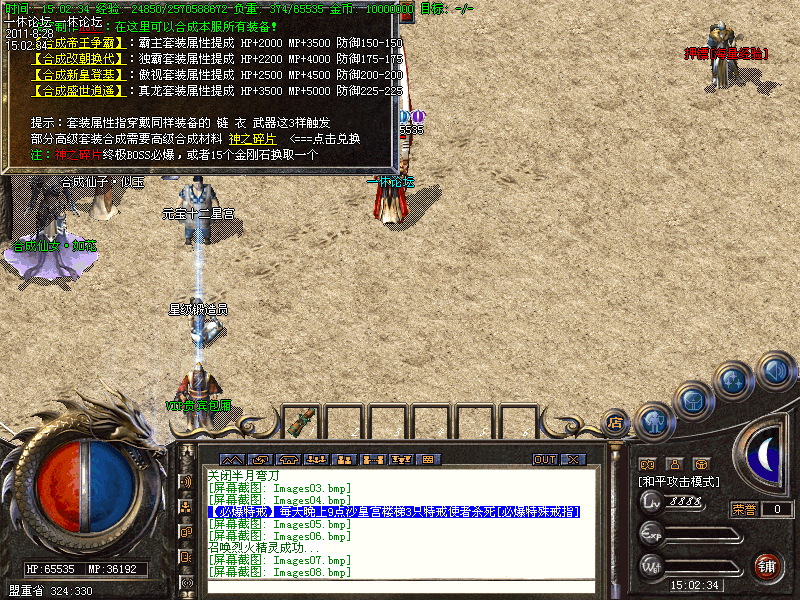 【注意】本服推出金刚石系统,每冲值1元人民币元宝将获得10个金刚石,金刚石可在土城金刚石使者处兑换装备哦!神之碎片岁可以在各大BOSS地图爆出!