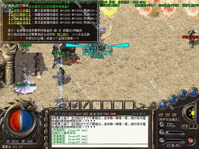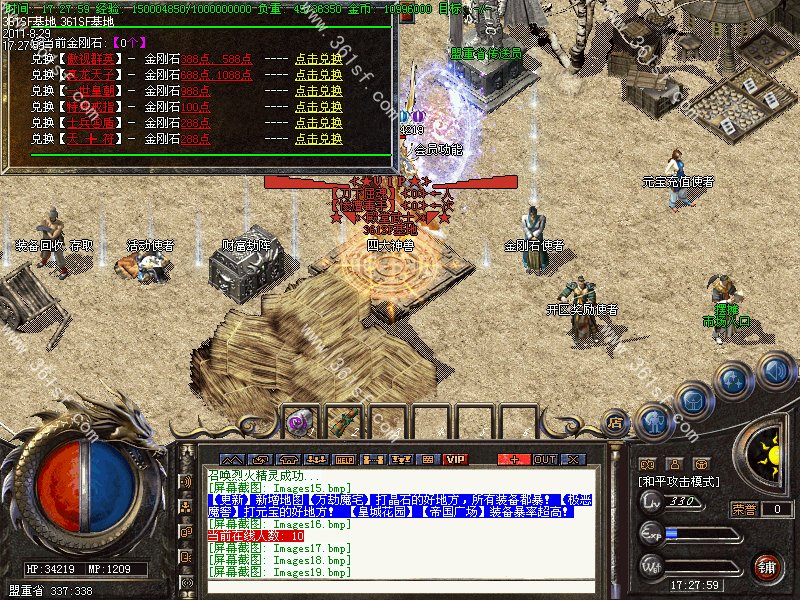 【注意】本服推出金刚石系统,每冲值1元人民币元宝将获得10个金刚石,金刚石可在土城金刚石使者处兑换装备哦!神之碎片岁可以在各大BOSS地图爆出!
