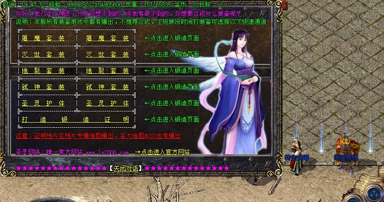 【14】:本服新增3个超级地图,狂爆本F所有高级装备,详情点击NPC“圣灵传说”,散人打宝的好地方。