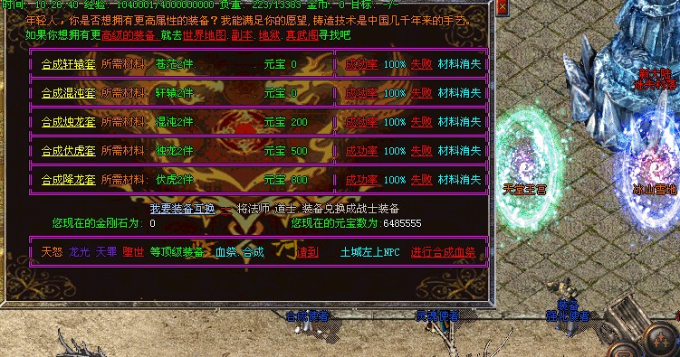 【温馨提示】本私服 无GM 自称Gm均为骗子唯一充元宝方式在登陆器.网站.进行充值.比例 短信1:8000 点卡1:12000 网银 1:16000 充值1000元宝赠送1个金刚石