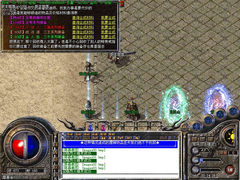 【装备回收】玩家打出来的各种低级装备都可回收.可以在土兑换NPC那里换取经验和元宝.还会召唤出超强BOSS狂爆元宝装备!.