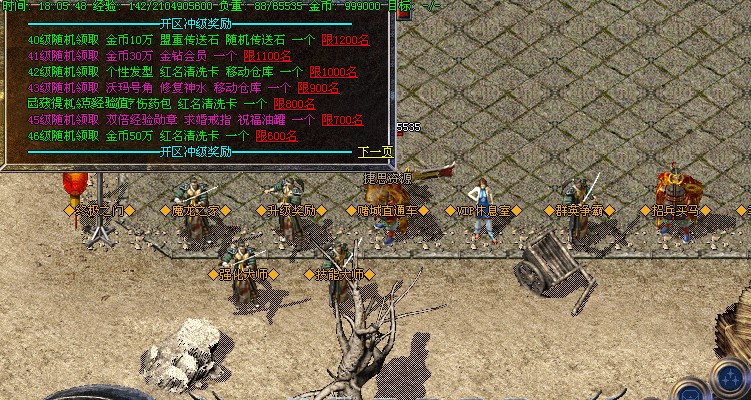 ④ 攻沙指南:开区第四天后全区统一攻沙,奖励:100000元宝+强化开天系列武器(任选)。老区攻杀奖励50000元宝 .