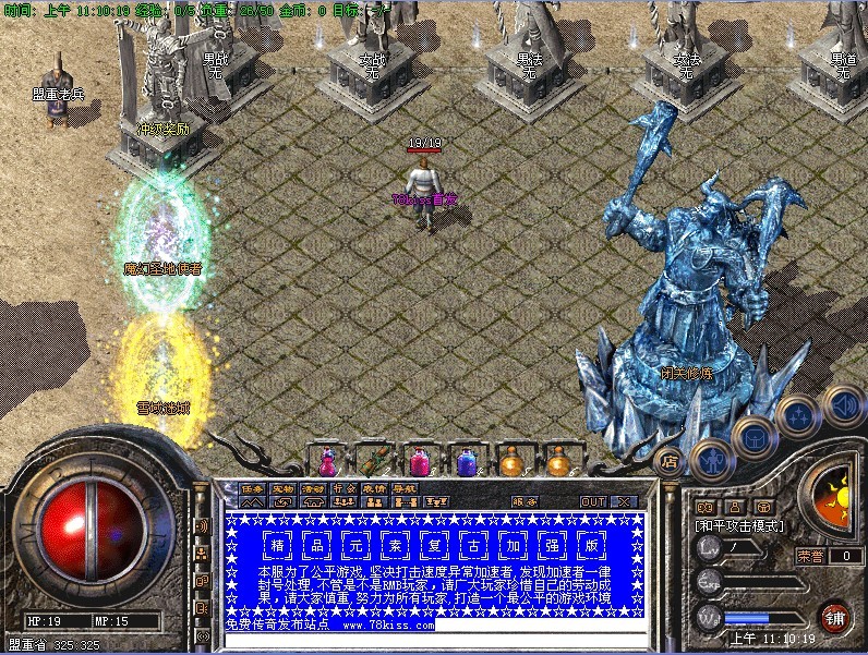 【爆率提示】祖玛七层爆出初级祖玛、赤月装备爆率一般,幻境七层爆出赤月装备,爆率较高!雪域一层爆出赤月装备、40级新衣、屠龙级别武器,爆率较高!雪域二层爆出精品系列装备,爆率一般!其他自己体会!
