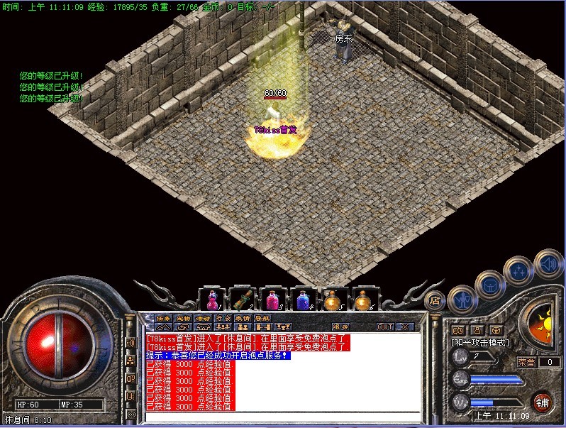 【新人攻略】新手玩家可以去休息间泡点,很快可以到40级。然后可以到土药砍猪,可以迅速升到55级,以后可以到VIP泡点,速度更快!