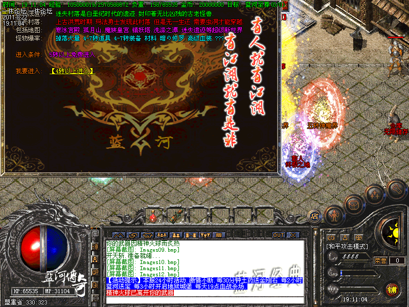 【赚取元宝】:新手地图.VIP贵族专属地图:免费进入比较适合新人打装备回收元宝的六道轮回通关地图!