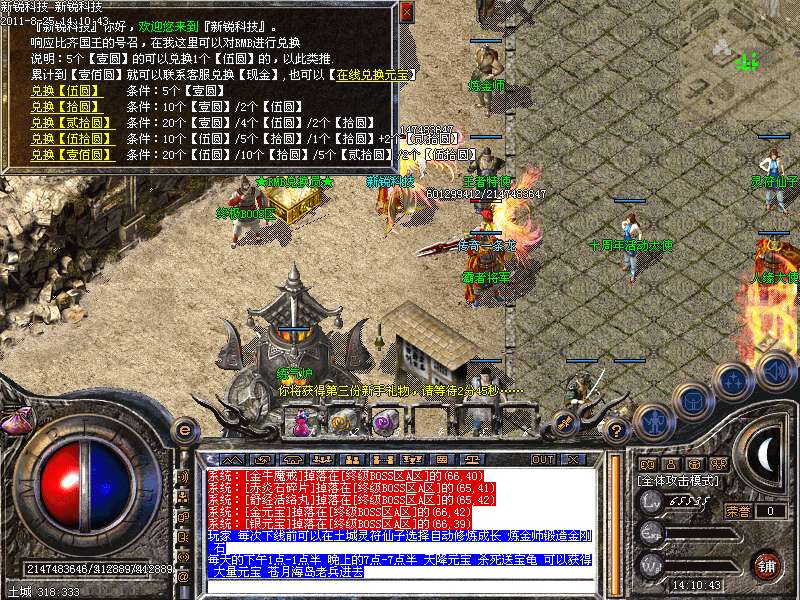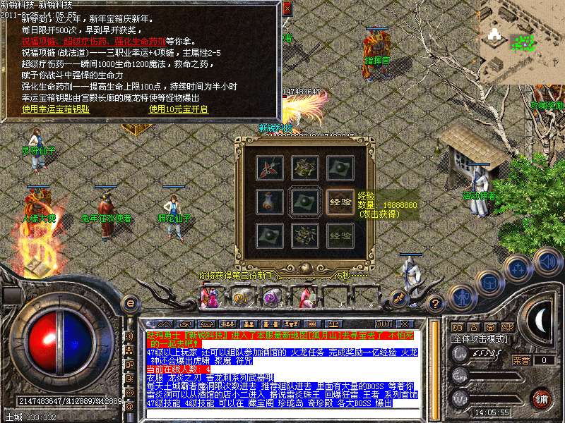 新手玩家上线比奇新手村,做完新手任务可以获得上千万经验!