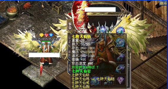 【独特功能2】升级宝石:每升一级装备会增加一颗★,1-6每次加10点全属性,7-12每次加15点,点背包右下角的蓝色按钮即可升级!!!
