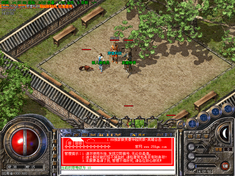 5.新人到土城后可打(打经验练功师)10分钟到100级,等级控制在150级左右.