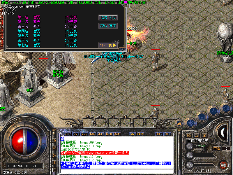 13.服务器每天还会举行以下活动:天降神技-1小时/次,屠魔夺宝-3小时/次,屠杀终极教主-4小时/次等等