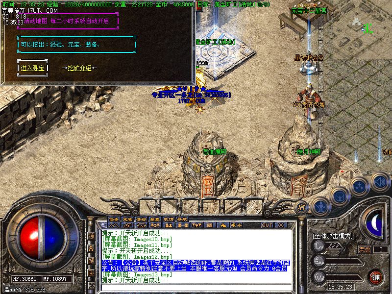 ①.【黄金矿工】:每天12.30-20.30之间每2小时开启一次,元宝经验装备,大放送