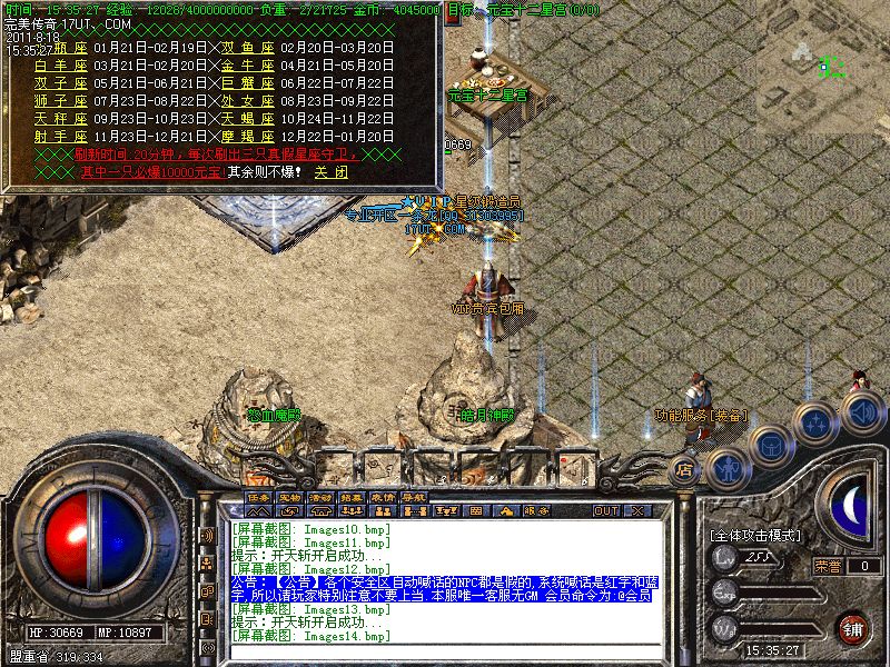 【十二星座】增加12星座,每20分钟每个星座刷3只守卫,其中一只为真,杀死必爆10000元宝!!