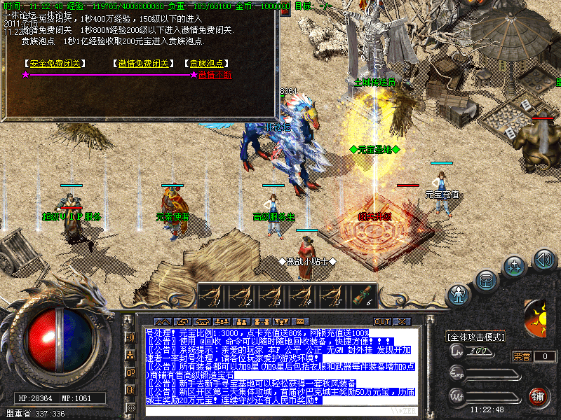 ★新区开放第三天攻城,新区奖励60W元宝.老区奖励30万元宝.攻城后自己到总管处领取元宝。