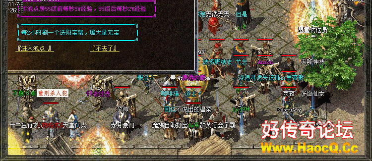 【公告】:欢迎进入<$SERVERNAME>,本服元宝比例:1元=1500元宝 .点卡赠送80%. 网银赠送100%.请到网站充值[唯一官方网站]bbs.haocq.cc....