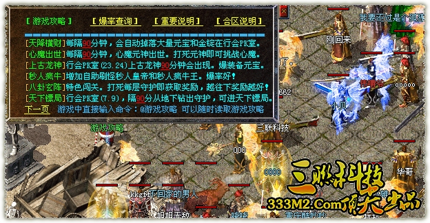 地图介绍:高潮圣地→每隔半小时刷出三只狂爆怪物,爆皓月以下所有装备,最具高潮的地图: