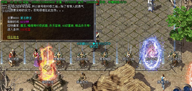 新手玩家请到祖玛打取祖玛装备换取元宝,新增多个[后期地图]里面大怪爆终极装备。
