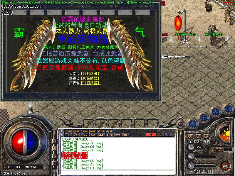 本服暴率较高,大家很快有玉兔级装备,稀世装备可以在土城合成非常简单,版本是在仿盛大1.89基础上,更新到了最新装备和装备技能