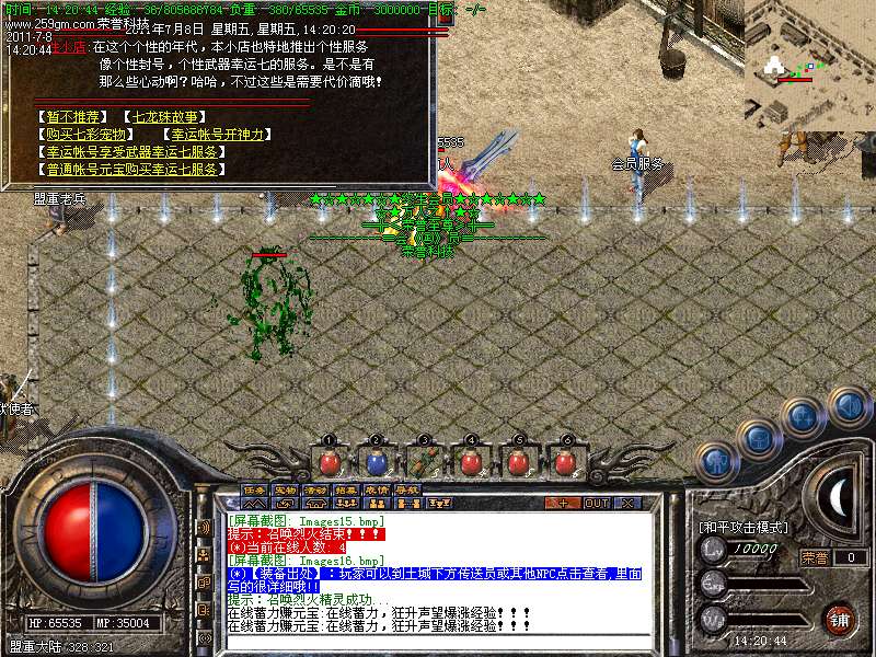 17.本服承诺,所有装备一律自己在游戏中获得,所有元宝购买,一律自己在网站上进行充值,无GM在线卖装备,也无GM在线卖元宝!