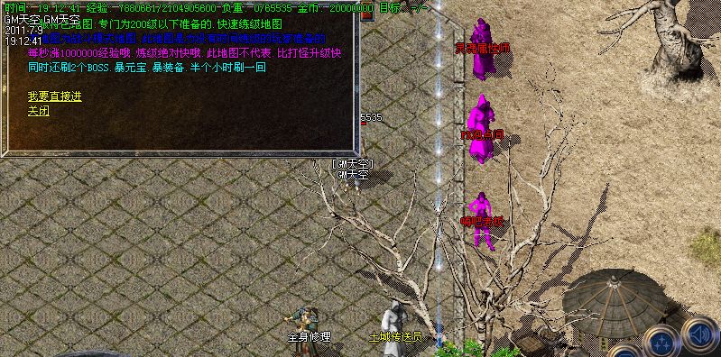 温馨提示:本服唯一网站,,客服QQ:无GM。,游戏里无管理,如有在游戏内自称是GM的都是骗子,封一切外挂,有用外挂的广告牌上留言.查到用挂的马上封号处理!