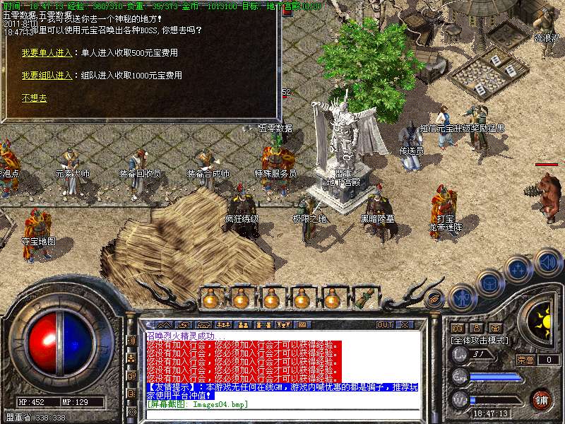 特级地图:神技迷阵、梦魇地图、狩猎BOSS,打特级装备赚取元宝的地图,土右边 NPC进。