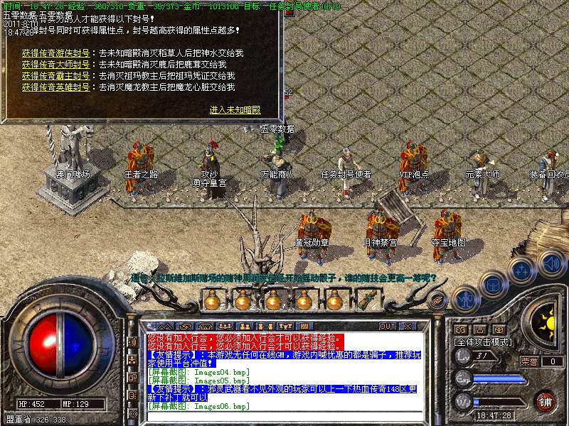初级地图:魔龙地图、邪恶深渊、封印监狱,打初级装备和赚取元宝的地图,传送员处进。