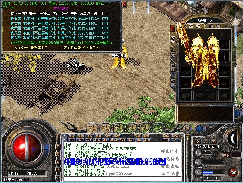 10.行会争霸每天15点,22点举行一次大型PK活动,获胜者,可以得到10000元宝,1亿经验!进入期间每秒可得15万经验
