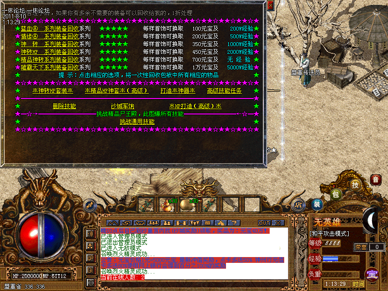 公告:服务器新增地图《精品尸王殿》可爆到3职业所有通用技能,详情请查询装备回收NPC!!!