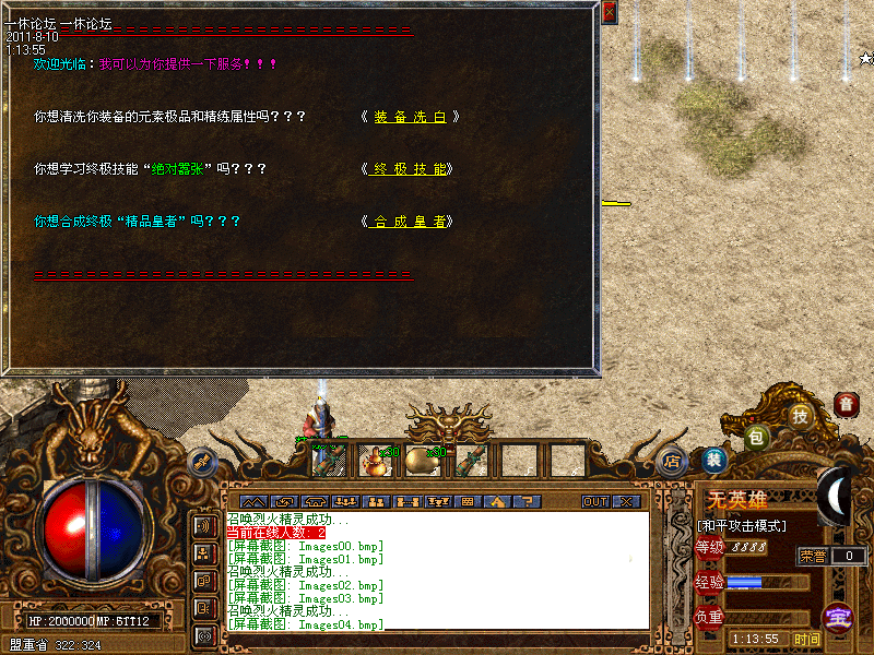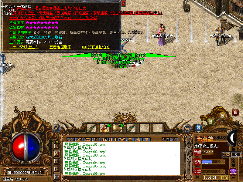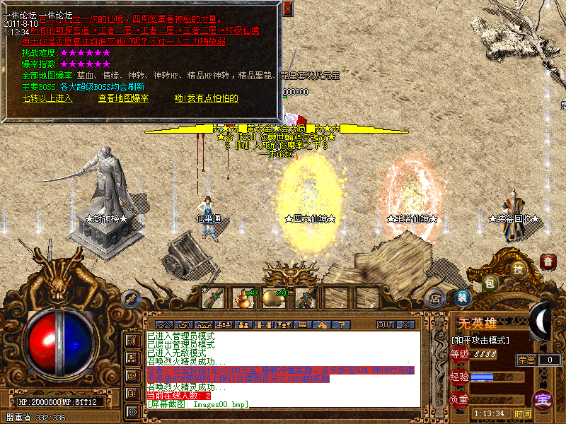 公告:最新加入新地图:远古仙境、共5层 第五层需要组队进入!!新加一套装备:精品皇者套、具体详情游戏中查看!!