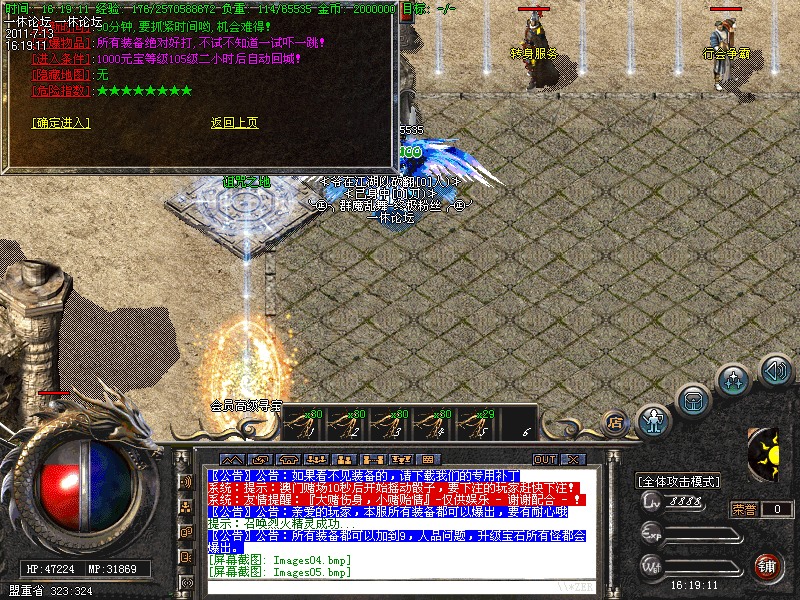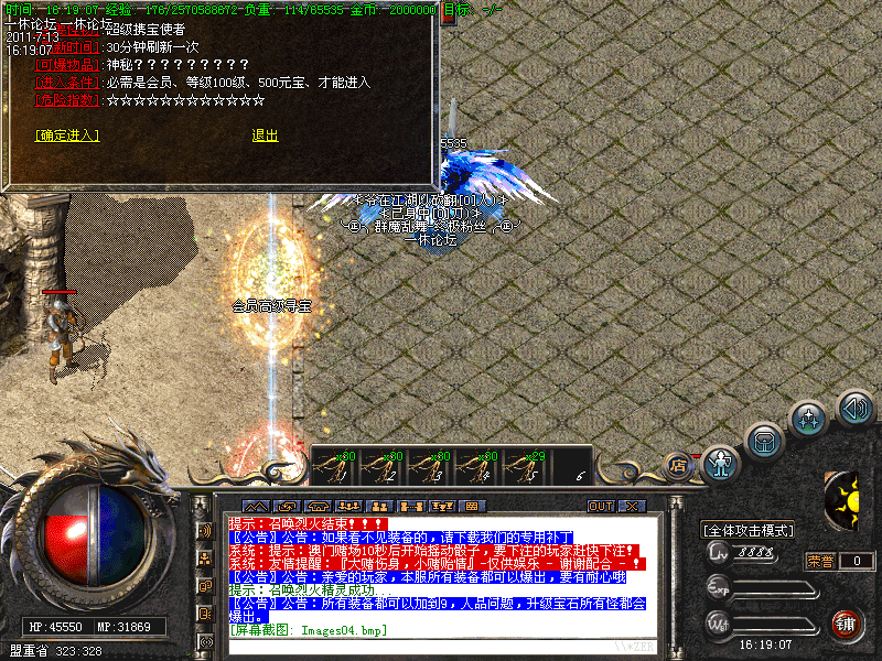 每日19点准时开放猜点活动,奖励5500元宝,19点05分准时开放行会争霸,胜利行会奖励5000元宝,请大家准时报名参加!