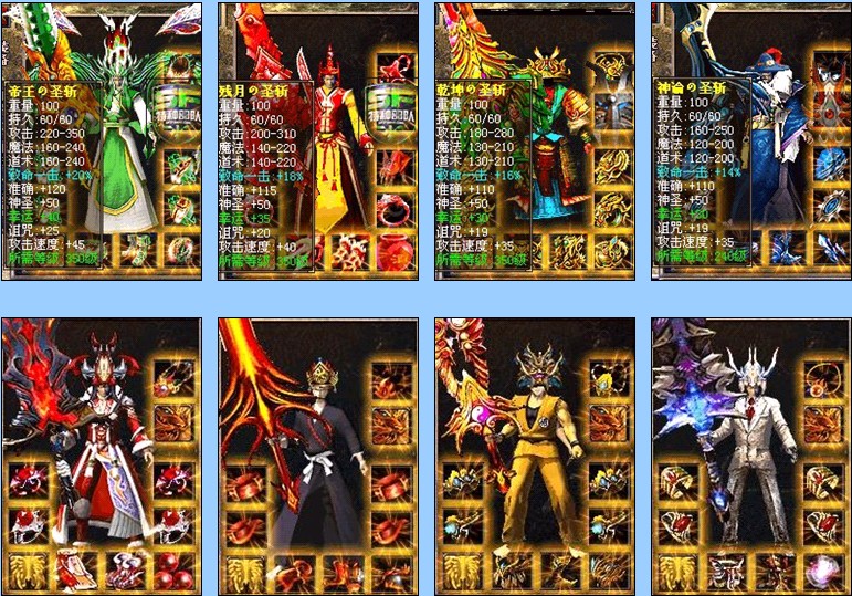 5.装备等级划分:裂天,光明,九天,江湖,风云,神逾,乾坤.残月.帝王 !