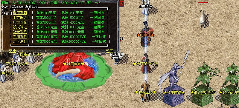 8.攻沙指南:开区3天后全区行会统一攻沙,攻沙奖励:500W元宝+江湖武器